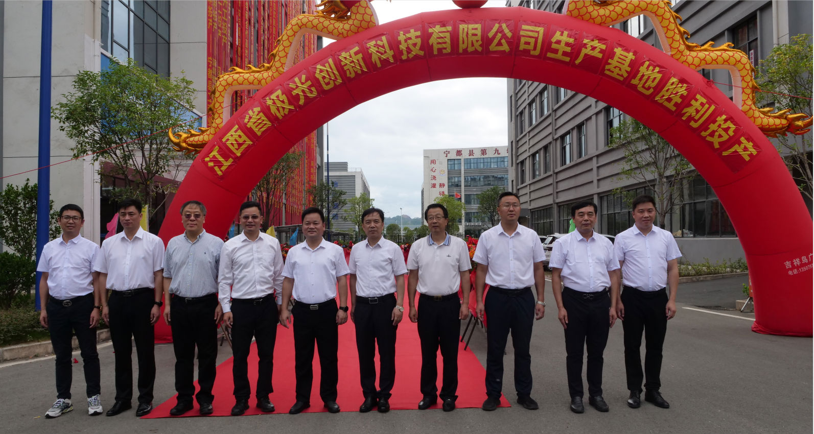 隨著活動(dòng)的有序推進(jìn),上午九點(diǎn)半,在禮炮聲中,在寧都縣縣委副書記、縣長(zhǎng)何國(guó)杰的宣布下,江西省極光創(chuàng)新科技有限公司正式投產(chǎn)!